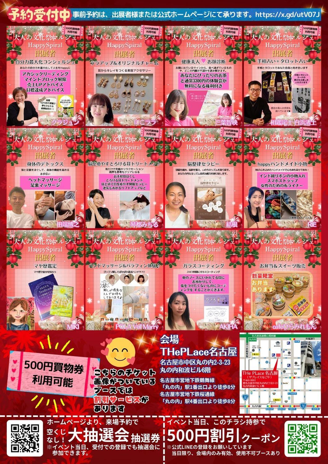 | 注意事項など | ・駐車場は、近隣のコインパーキングまたは、名古屋市の無料駐車エリアをご利用ください。 ・イべント内容・時間等、予告なく急遽変更になる場合があります。 ・記録・広報等のため、イベントの写真撮影・録画・録音などを行う場合があります。 |